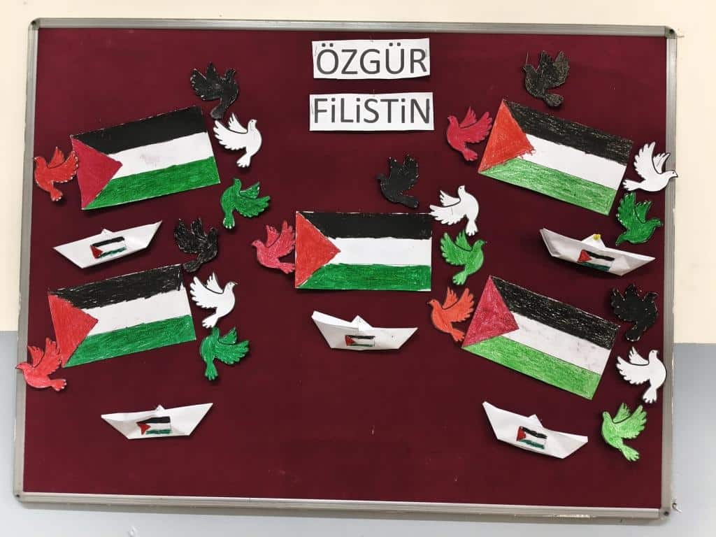 Yüksek kurumsal ve ahlâkî sorumluluk bilinci doğrultusunda, Gazze'de İsrail tarafından 2.yılını dolduran zulüm, ve soykırımın öğrencilerimiz tarafından TYMM Erdem-Değer-Eylem yaklaşımı esas alınarak, öğrencilerin ulusal ve evrensel meseleler karşısında eleştirel düşünme becerisi ve sorumluluk bilinci geliştirmeleri için 7 Ekim Salı günü düzenlenen etkinliklerle, Filistin'deki insan hakları ihlallerinin sona erdirilmesine yönelik kararlı desteğimizi somut biçimde göstermek sonunda öğrencilerimiz 'Özgür Filistin' temalı pano oluşturararak okul duyuru panosunda sergilemeye başladı.