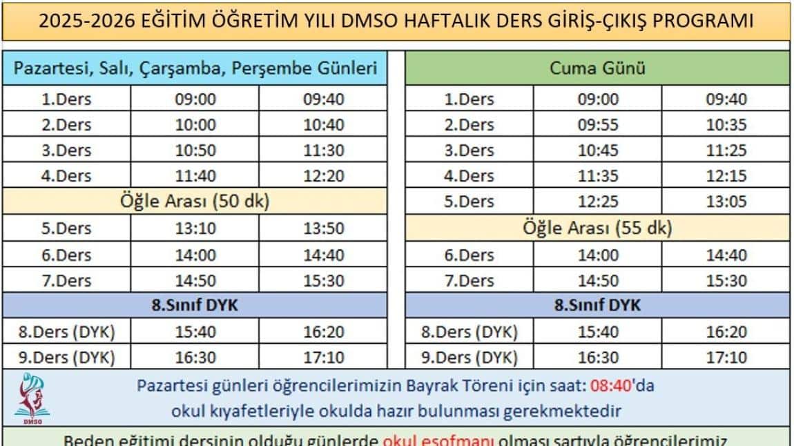 Okulumuz Zaman Çizelgesi Yayınlandı